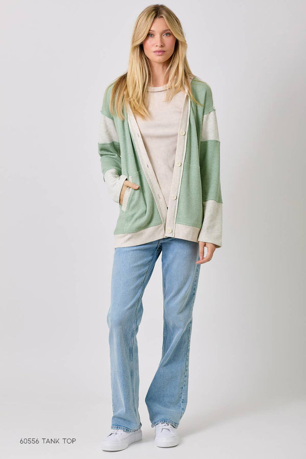 Elowen Washed Thermal Sleeveless Henley Top – Textured Ribbed Casual Essential