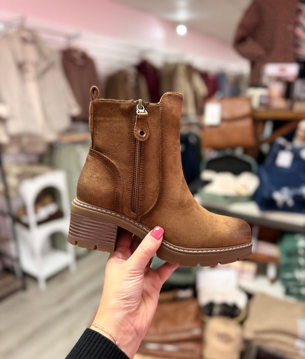 Pierre Dumas Everlee Suede Lug Ankle Boot – Chunky Heel Side-Zip Bootie