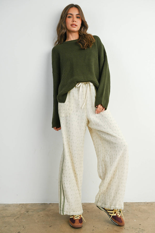 Elowen Lightweight Striped Sweater: Soft Sage – Soft Long Sleeve Knit with Balloon Sleeve Detail