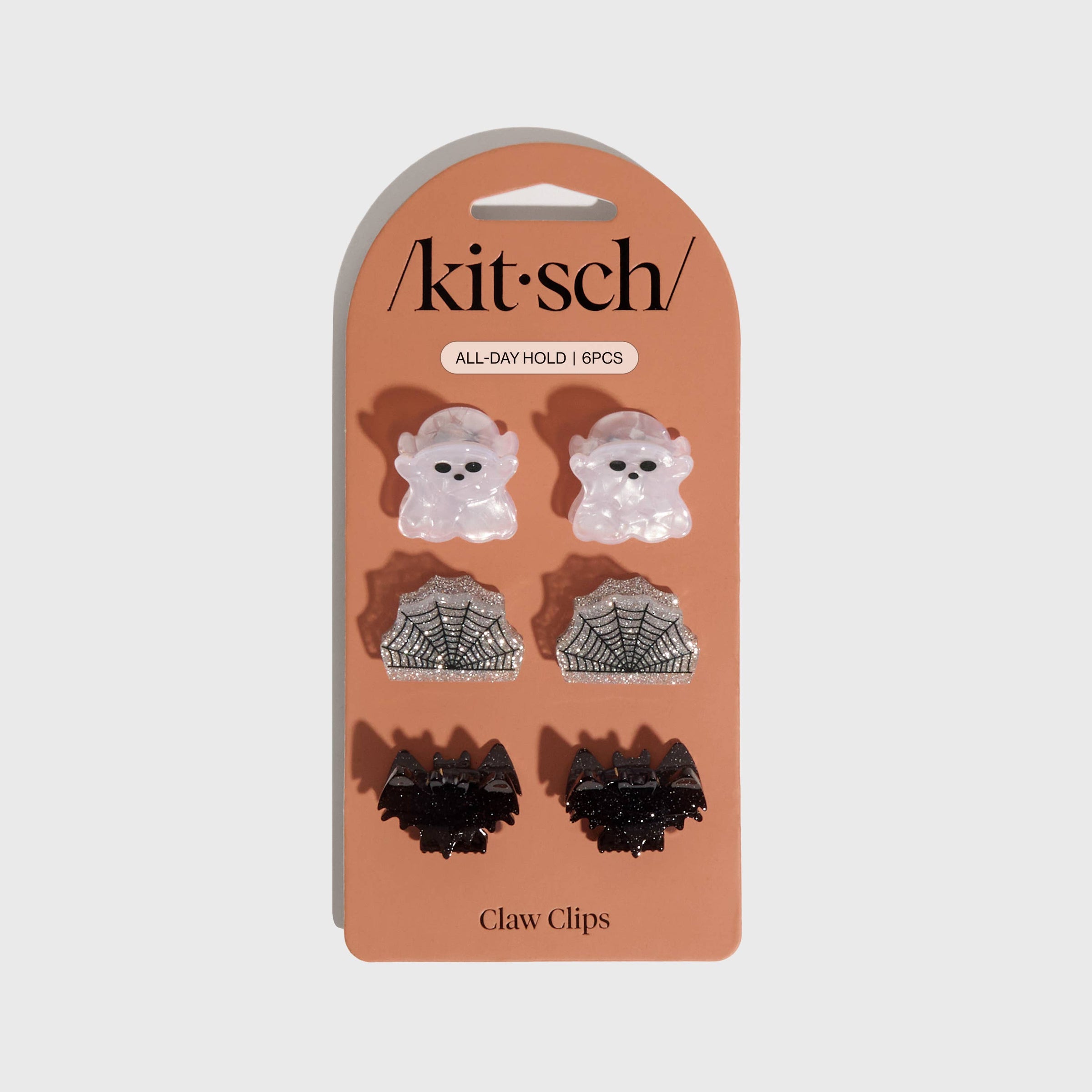 The Mini Claw Clips 6pc Set - Halloween from KITSCH is perfect for adding a spooky touch to your hairstyle this Halloween season. Crafted from recycled materials, these clips are not just stylish but also sustainable. They're a fun way to express your festive spirit and commitment to the environment. Whether you're dressing up for a party or want to add a bit of holiday flair, these clips are a hair accessory must-have. Elevate your beauty routine with KITSCH's reliable and sustainable solutions.