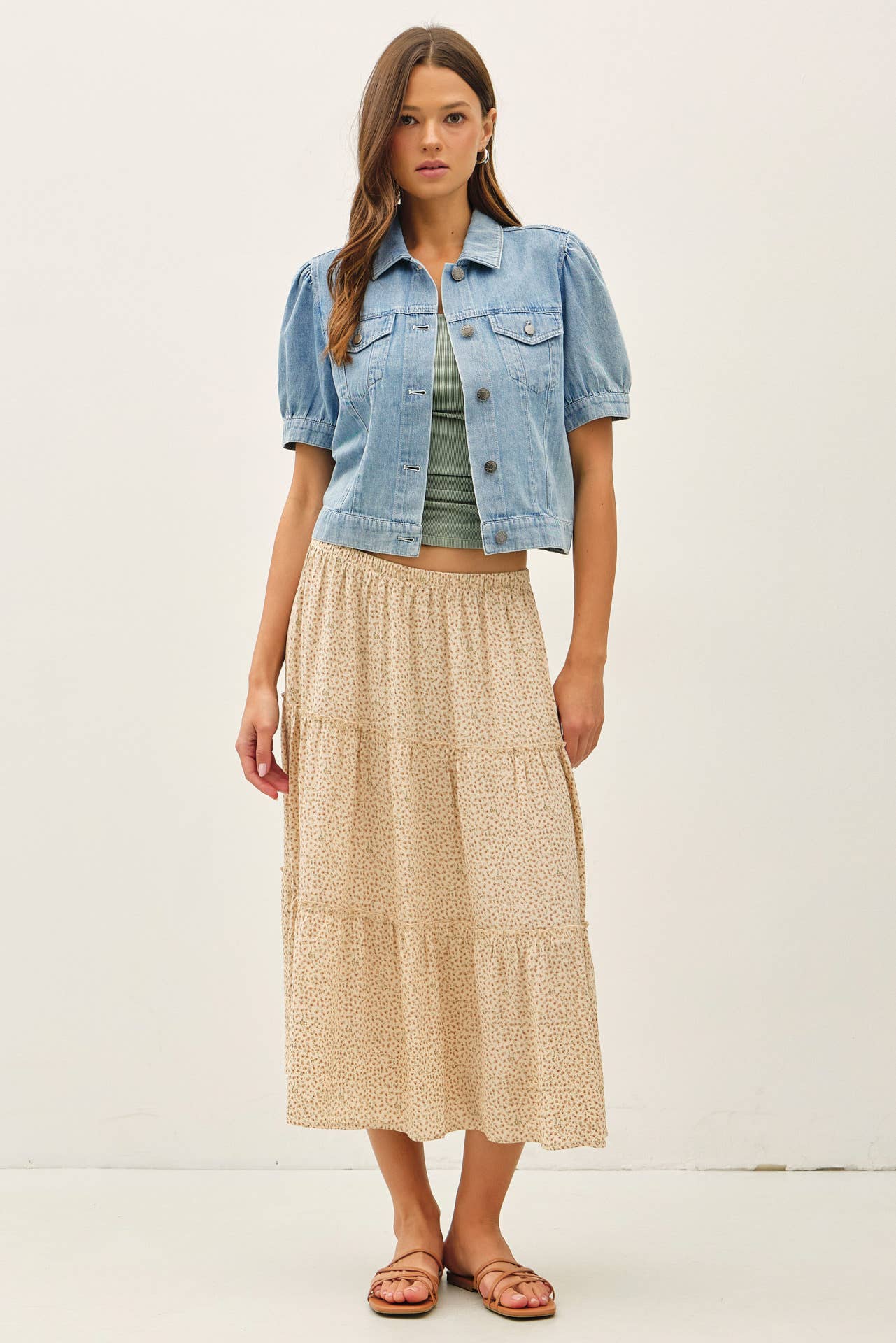 The standout puff sleeves bring a soft, romantic touch, while the structured denim keeps the look polished and versatile. The cropped length pairs perfectly with high-waisted denim, dresses, and skirts, making it an easy layering piece for spring and summer.
