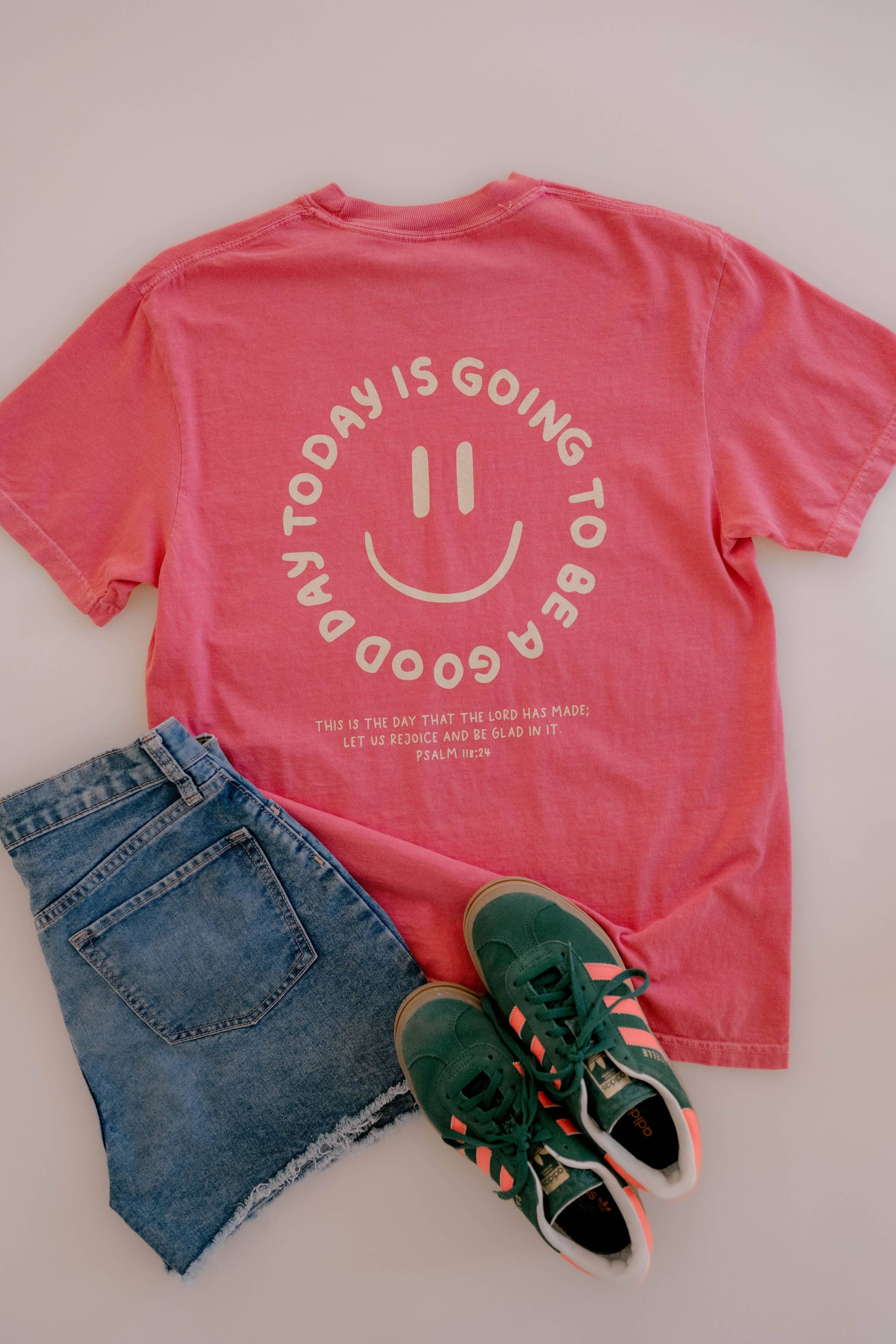 Bright, cheerful, and full of meaning, the Good Day Tee is the perfect blend of faith and fun. Featuring a playful watermelon graphic with soft yellow ink on both the front and back, this tee brings a fresh summer vibe to your everyday wardrobe.