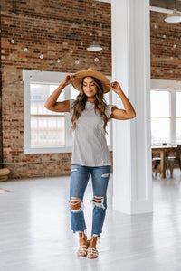 Introducing the Priscilla Striped Ruffle Top - the perfect blend of casual and cute for any occasion! This easy-to-style blouse features playful ruffle sleeves and a classic stripe pattern in neutral colors, making it a must-have addition to your wardrobe. Upgrade your style game effortlessly with Priscilla.