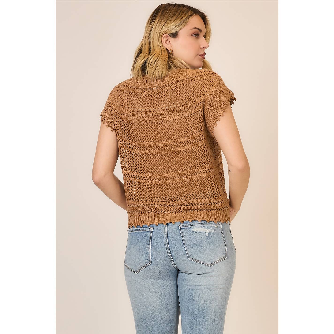 Lightweight and breathable, this short sleeve knit is perfect for layering over a bralette or cami. The subtle texture adds dimension to even the simplest outfit — making it feel styled without effort.