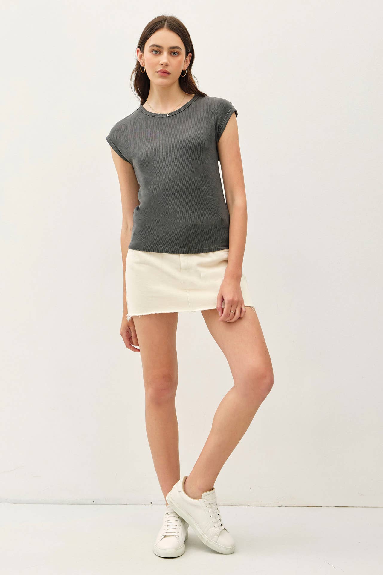The Hollis Ribbed Tee is designed in a softly textured rib fabric that skims the body with a slim, feminine fit. Featuring cap sleeves and a classic crew neckline, this lightweight essential delivers that clean, polished look your everyday wardrobe needs.