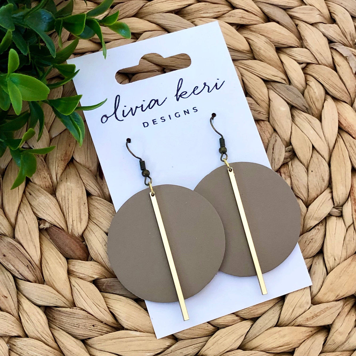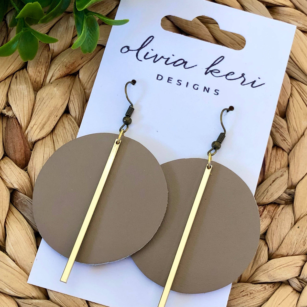 Bold meets minimal with the Lindsay Earrings in classic beige. Crafted from genuine leather and accented with a sleek gold bar, these modern circle earrings add a polished touch to any outfit. Lightweight and stylish, they’re your go-to accessory for effortless everyday elegance or dressed-up nights out.