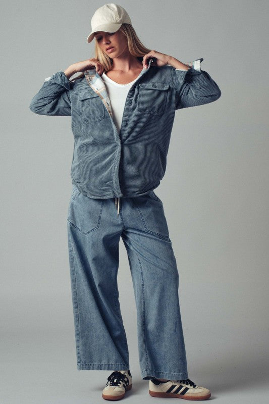 Double the style, double the cozy. The Aspen Reversible Corduroy Plaid Shacket is the ultimate layering piece for cold-weather days. One side features soft, textured corduroy for a polished everyday look, while the other flips to reveal a warm plaid flannel lining for that casual, rustic vibe we all love. It’s like having two jackets in one—perfect for mixing up your winter outfits without sacrificing comfort.