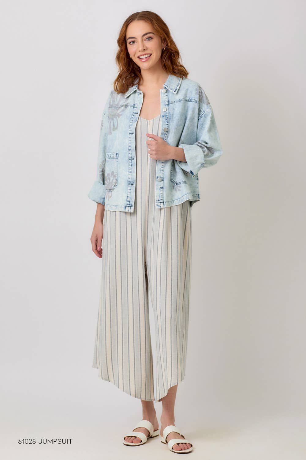 The button-down front and functional pockets give it that timeless denim feel, while the floral pattern softens the look for a more elevated, boutique style. Lightweight enough for layering, this piece works beautifully over tanks, tees, or dresses.