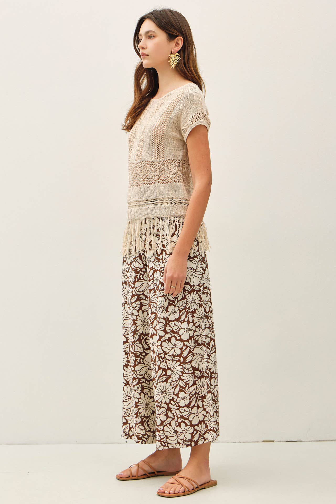 These floral wide leg crop pants are designed for comfort and style, featuring a lightweight linen blend fabric that keeps you cool on warm days. The relaxed wide leg silhouette gives you that easy, breezy feel while still looking put together.