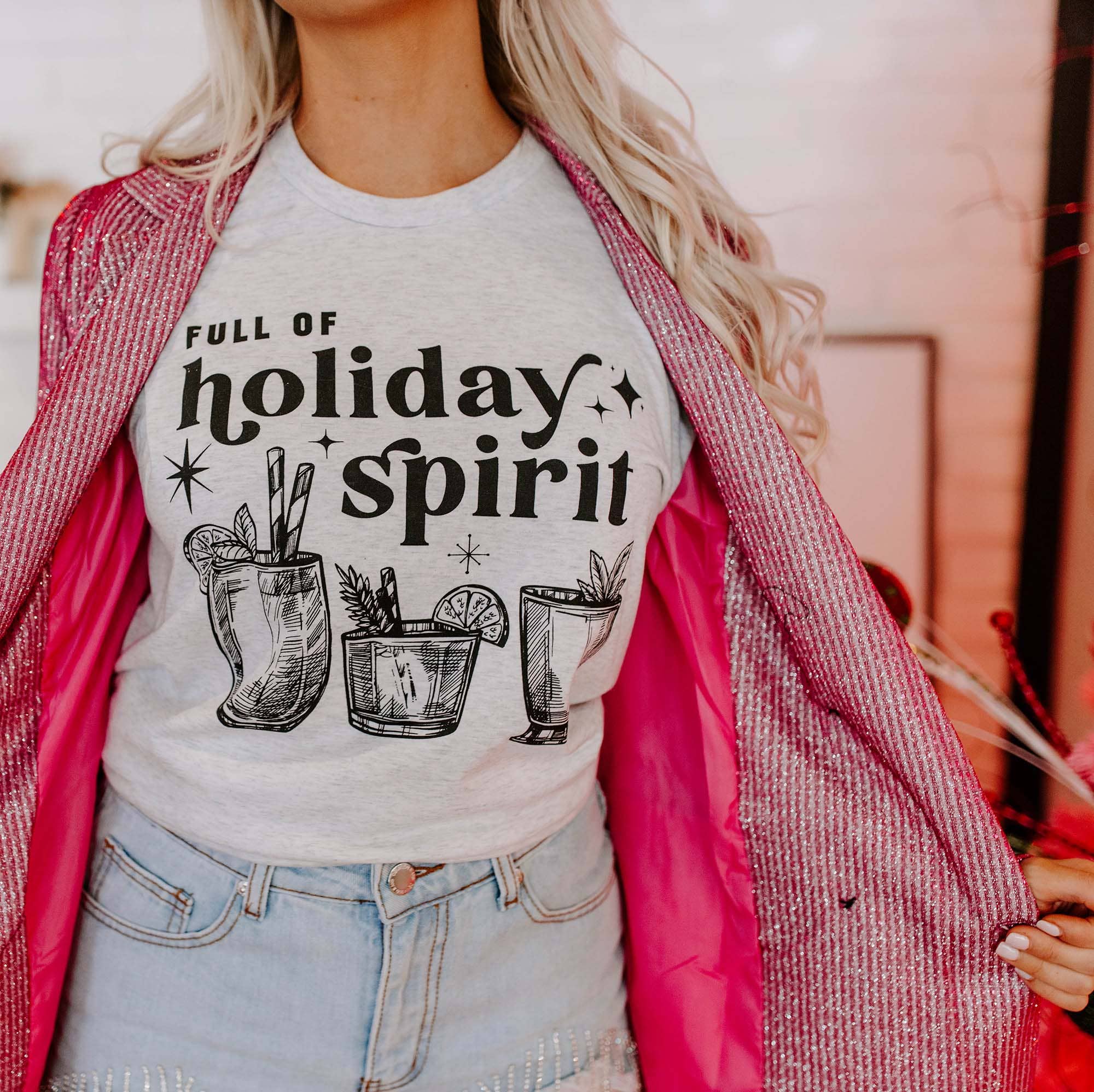 Pour a glass and spread the cheer with our “Full of Holiday Spirit” Christmas shirt. Featuring bold festive lettering on a classic white tee, this best-selling graphic is perfect for holiday parties, wine lovers, and shoppers who enjoy a little humor with their seasonal style. A great addition for boutiques, gift shops, and Christmas collections looking for funny holiday shirts that sell fast.